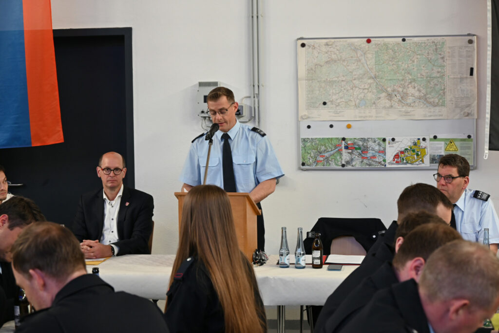 In seinem Grußwort sprach Bürgermeister Ermtraud allen Einsatzkräften seinen Dank für deren großes Engagement aus und hob die hohe Einsatzbereitschaft hervor. Sein Dank richtete sich ebenso an die Familien, die die ehrenamtliche Tätigkeit im Hintergrund unterstützen. Landrat Achim Hallerbach betonte die zentrale Rolle der Feuerwehren für den Bevölkerungsschutz und verwies auf die Bedeutung der engen Zusammenarbeit zwischen Kommunen und Landkreis, insbesondere mit Blick auf zukünftige Herausforderungen.