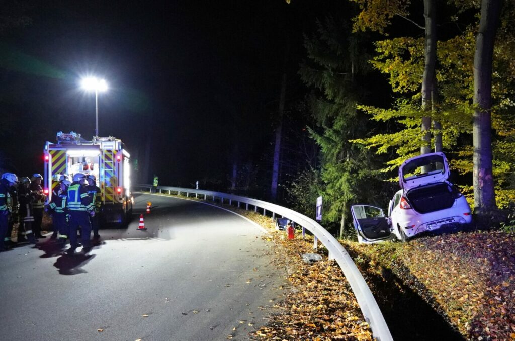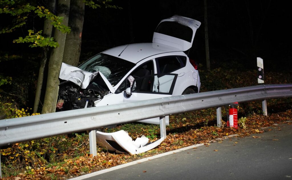 In einer Linkskurve verlor die nach ersten Angaben alleinbeteiligte Fahrerin die Kontrolle über ihr Auto, geriet hinter die Leitplanke und prallte gegen einen Baum. Nach Angaben vor Ort konnte sie das Unfallfahrzeug selbstständig verlassen und wurde dann nach der medizinischen Erstversorgung mit einem Rettungswagen in ein Krankenhaus gebracht.