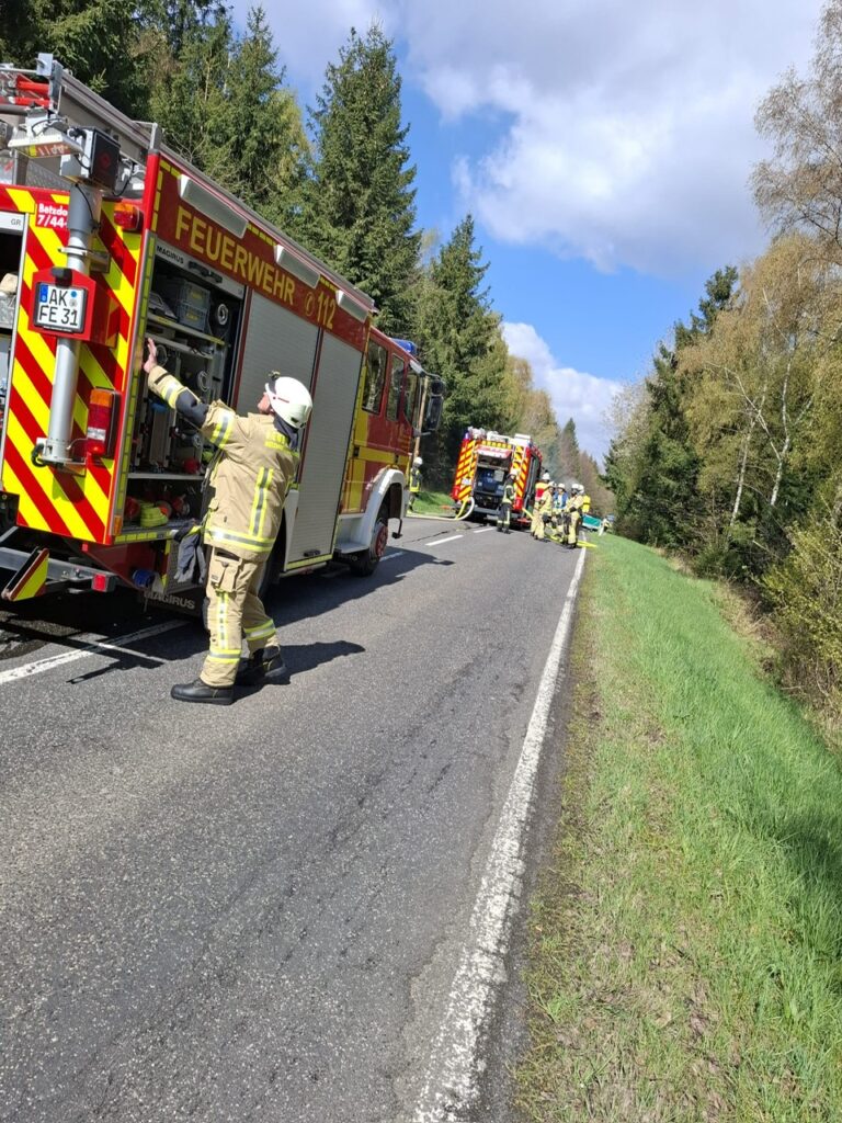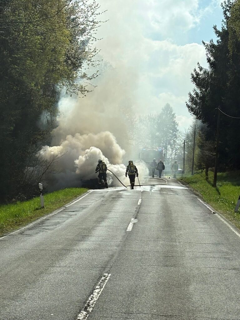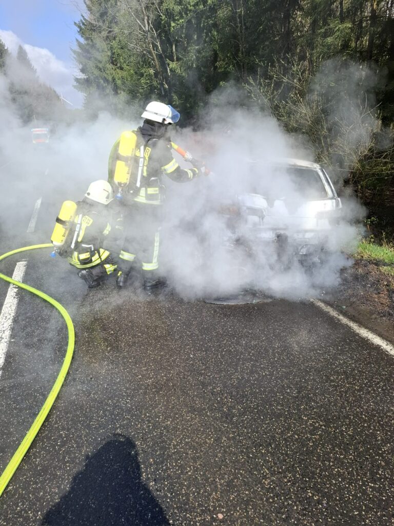 Am späten Vormittag wurde die Feuerwehr um 11:53 Uhr zu einem brennenden Pkw auf die L 281 in der Nähe des Steinebacher Forsthauses alarmiert. Zunächst war die Einsatzstelle am Ortsausgang von Malberg gemeldet worden.
