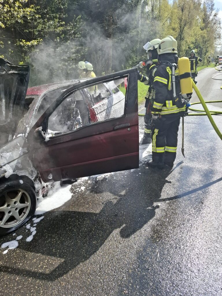 Aufgrund der Lage außerhalb geschlossener Ortschaften wurde gemäß Alarm- und Ausrückeordnung ein erhöhter Kräfteansatz gewählt, um ausreichend Löschwasser sicherzustellen. Vor Ort fanden die rund 35 Einsatzkräfte ein Fahrzeug im Vollbrand vor.