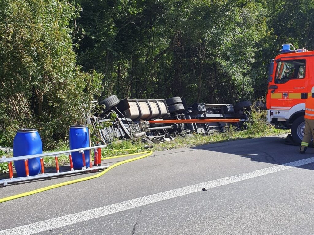 Die Feuerwehr und der Rettungsdienst waren schnell vor Ort. Während die Feuerwehr die Erstversorgung übernahm, wurde der Fahrer des umgestürzten Sattelzuges mithilfe einer Leiter aus seinem Fahrerhaus befreit. Parallel sicherten die Einsatzkräfte den LKW, um ein weiteres Abrutschen zu verhindern. Da die Dieseltanks unversehrt blieben, liefen nur geringe Mengen Öl aus, die von der Feuerwehr aufgenommen wurden. Beide Verletzten kamen zur weiteren Behandlung in umliegende Krankenhäuser.