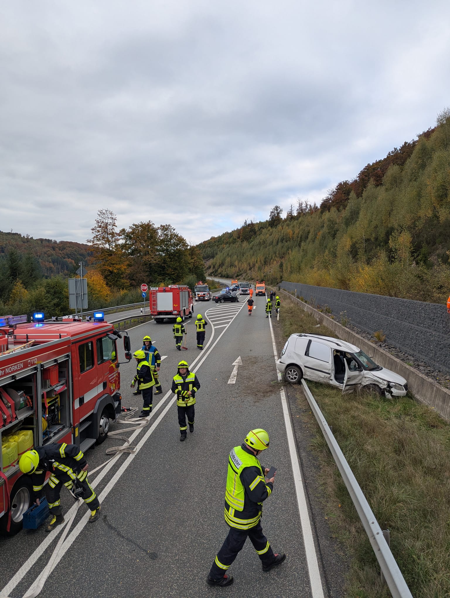 Am Dienstag, den 14. Oktober 2025, kam es gegen 13:45 Uhr auf der Bundesstraße 414 an der Einmündung zur Landesstraße 293 bei Unnau-Korb zu einem schweren Verkehrsunfall, bei dem zwei Menschen verletzt wurden.